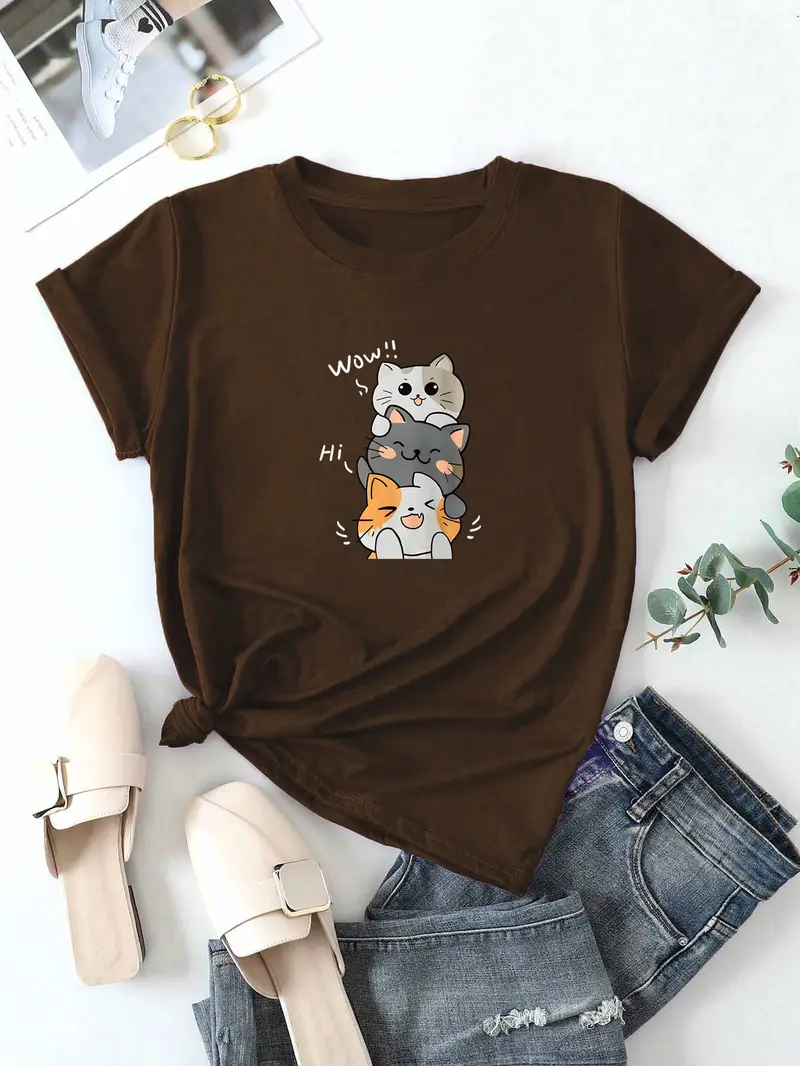 Cat Cats Cute Kitty Anime Pile Kawaii Neko Gift Cotton T-Shirt